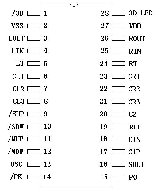PT2353衛(wèi)星低音炮3件式喇叭系統(tǒng)2.1聲道電子分頻器IC應(yīng)用電路原理圖說明