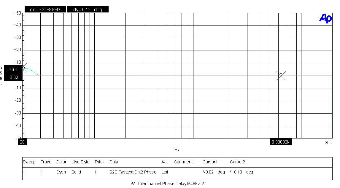 測試在二聲道左和右彼此之間在全頻之下的相位延遲。