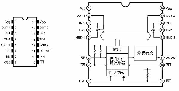 PT2256 是采用CMOS 工藝,為音頻設備等音量控制電子化而設計的一塊專用集成電路。采用SOP-16封裝,市場上的TC9235,SC9235,CSC2256與其管教兼容。