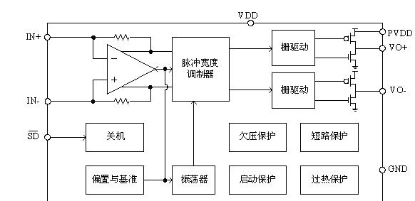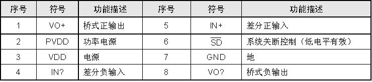 l 5V電源電壓下,帶4Ω負(fù)載輸出功率3W,總諧波失真10%。