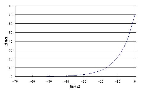 數(shù)字功放即脈沖調(diào)制的D類功放,與模擬功放的主要差別在于前者功放管處于開關(guān)工作狀態(tài)。在數(shù)字功放出現(xiàn)以前,音頻功率放大器最常用的為AB類功放,AB類功放保留了B類功放效率高的優(yōu)點(diǎn),同時(shí)由于使用小偏置電流而能實(shí)現(xiàn)較小的交越失真,在重放正弦波時(shí)理想效率高于70%。因?yàn)閷?shí)際重放的聲信號(hào)有很大的動(dòng)態(tài)范圍,如AM收音、磁帶能達(dá)到50dB,FM收音、CD遠(yuǎn)超過此值,從而導(dǎo)致模擬音頻功放實(shí)際效率很低,功放級(jí)需要較大的散熱片,限制了其在對(duì)散熱及效率較高要求場(chǎng)合的使用。下圖為AB類功放在重放正弦波時(shí)的最大效率,其中輸出0dB為開始削波時(shí)的功率。