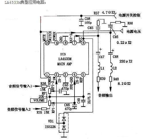 LA4533M耳機(jī)驅(qū)動音頻功率放大器IC功能特點(diǎn)及應(yīng)用電路原理圖說明