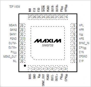 MAX9706/MAX9707具有引腳設(shè)置增益、同步輸入、輸出,以及使電源電流降至1μA的關(guān)斷模式。所有放大器具有雜音抑制電路。該器件可工作在-40℃至+85℃擴(kuò)展工業(yè)級溫度范圍,采用熱增強(qiáng)型36引腳(6mm x 6mm x 0.8mm)薄型QFN封裝。