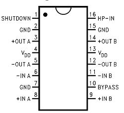 LM4863D是一個雙路音頻功率放大器.它能夠在5V電源電壓下給一個4Ω負載提供THD小于1%、最大平均值為2.2W的輸出功率。另外,在驅動立體聲耳機時耳機輸入引腳可以使放大器工作在單邊模式。LM4863D是為提供高保真音頻輸出而專門設計的.它僅僅需要少量的外圍元件,為了簡化音頻系統(tǒng)設計,LM4863D集雙路橋式揚聲器放大器和立體聲耳機放大器與一體。LM4863D還有外部控制的關閉模式,立體聲耳機放大器模式和熱保護關閉模式,還有減少開機噪聲功能。采用DIP-16封裝。