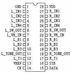 CSC9422內置運算放大器/四個音頻輸入信號選擇/MCU控制音量加減的電子音量控制電路IC電路特點及應用原理圖介紹