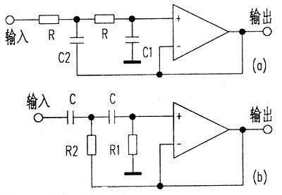 圖3是標(biāo)準(zhǔn)的巴特沃斯二階有源濾波器。圖3a為低通濾波器,其計算公式如下:
