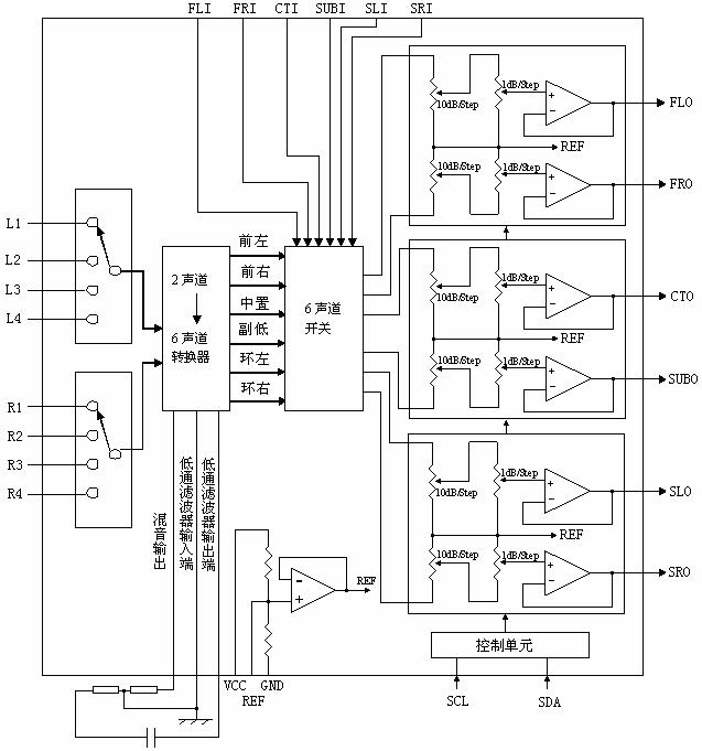 內(nèi)置2聲道——6聲道轉(zhuǎn)換器和副低頻低通濾波器;