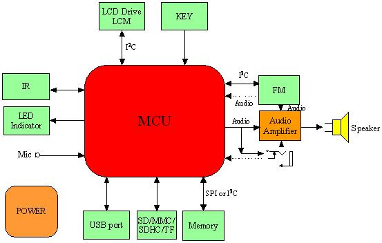 調(diào)頻(FM)接收機(jī)在讀卡迷你音箱和便攜式播放器中已經(jīng)開始廣泛應(yīng)用了,它能提供極佳的音質(zhì)、訊號穩(wěn)定性和抗噪聲能力。近來FM接收機(jī)已開始出現(xiàn)在更多的行動和個人媒體播放器等市場應(yīng)用中,為了電池續(xù)航力,在后級功率放大器選用上,D類功放IC與FM收音的結(jié)合是不可避免的趨勢。關(guān)于帶FM收音的插卡式(便攜)音箱,大致總結(jié)了關(guān)于此類系統(tǒng)的總體框架。相關(guān)模塊已盡可能多的列出,可根據(jù)具體系統(tǒng)實際情況刪減。