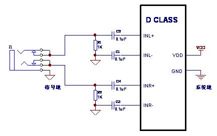 圖2 D類功放IC差分輸入原理圖