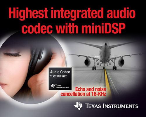 ·第三代 miniDSP 技術可在高達 16 kHz 的頻率下抵消寬帶噪聲及回聲,為視頻會議等應用中的電路交換或 VoIP 電話帶來高清語音質量;