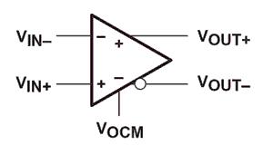 差分放大器就是接受和輸出差分信號的器件,同運算放大器一樣,它能接收雙端輸入,不同的是它具有雙輸出端,而不像運算放大器只有單端口。在差分放大器中,其輸出共模電壓(VOCM)能獨立地被差分電壓控制。圖1是差分放大器的簡明原理圖。