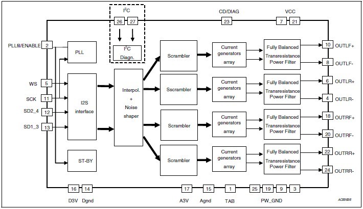 TDA7801是ST的全新車用數(shù)字音頻功率放大器系列的首款產(chǎn)品,意法半導(dǎo)體正在增加該系列產(chǎn)品的新成員:包括TDA7801的 Class-SBi版(ST擁有專利的能效類產(chǎn)品,功耗達(dá)到除了Class D以外的最低水平),和一款突破性的數(shù)字輸入Class D放大器解決方案,進(jìn)一步降低功耗。