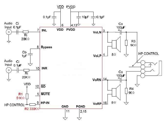 (1).用耳機(jī)功能,用/SD控制引腳,/MUTE功能不用,如下圖:
