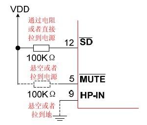 3.關(guān)于Pin12(/SD),Pin5 (/MUTE),Pin9(HP-IN)內(nèi)部上拉和下拉問題