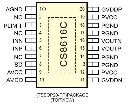 CS8616C是一款20W單聲道高效D類音頻功率放大電路。先進(jìn)的EMI抑制技術(shù)使得在輸出端口采用廉價(jià)的鐵氧體磁珠濾波器就可以滿足EMC要求。內(nèi)部包括一個(gè)功率可調(diào)限制器和直流檢測電路來對揚(yáng)聲器進(jìn)行保護(hù)。功率可調(diào)限制器允許用戶設(shè)定一個(gè)比電源電壓低的虛擬電壓來限制流過揚(yáng)聲器的總電流,直流檢測電路在輸入電容損壞或者輸入短路時(shí)關(guān)斷輸出級。CS8616C內(nèi)置了過流保護(hù),短路保護(hù)和過熱保護(hù),有效的保護(hù)芯片在異常的工作條件下不被損壞。CS8616C可以驅(qū)動(dòng)低至3Ω負(fù)載的立體聲揚(yáng)聲器,具有高達(dá)90%的效率,使得在播放音樂的時(shí)候不需要額外的散熱器。