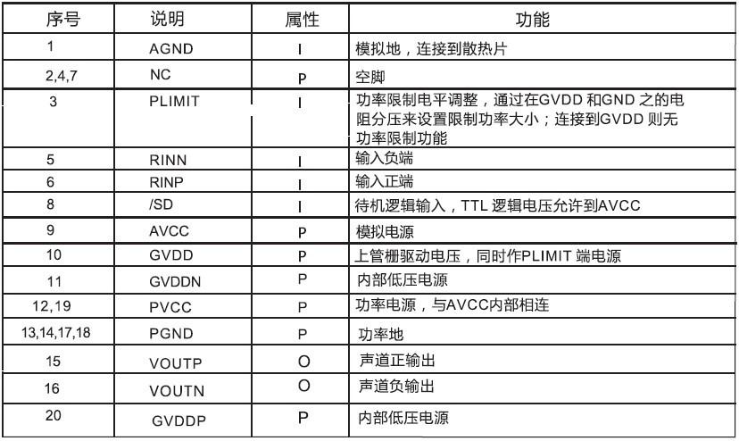 RL = 4 Ω 20W(典型值)