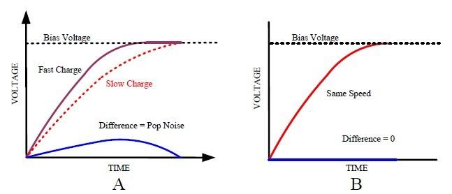 功放在啟動時,偏置電壓會從0V 上升到額定的偏置電壓,該過程的時間長短取決于內(nèi)部偏置電壓源對外部阻抗網(wǎng)絡(luò)的充電速度。