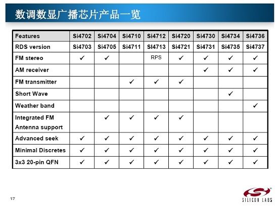 Silicon Labs數(shù)調(diào)數(shù)顯廣播芯片產(chǎn)品一覽: