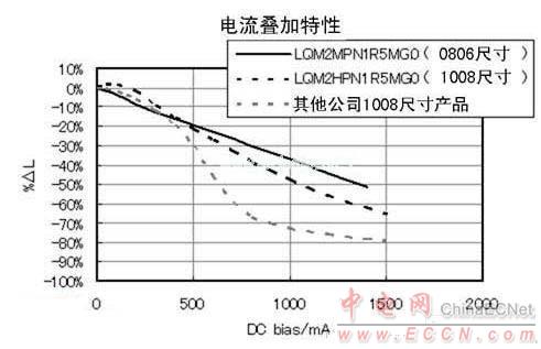 通過(guò)直流電流后感值偏執(zhí)特性良好,可以作為各功率電感的特長(zhǎng)。電流-感值偏執(zhí)特性是指功率電感通電時(shí),電流變大引起感值下降的性質(zhì)。這是疊層型功率電感的封閉磁路構(gòu)造導(dǎo)致的磁通量飽和引起的,因此為了克服這個(gè)弱點(diǎn),開發(fā)新技術(shù)以降低疊層鐵氧體中的磁通量分布,從而改善電流的疊加特性,最后反映在各個(gè)產(chǎn)品上。