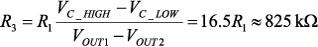 對(duì)于VOUT1 = 1.2 V, VOUT2 = 1.0 V, VFB = 0.8 V, VC_LOW = 3.3 V, VC_HIGH = 0 V, 和 R1= 49.9 kohm, R2 and R3可以如下計(jì)算