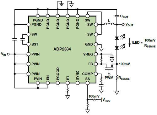 圖11. 使用ADP2384進(jìn)行PWM調(diào)光