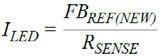在工作中,經(jīng)過分壓的輸出電壓連接到FB引腳,與內(nèi)部600 mV基準(zhǔn)進(jìn)行比較,用于生成開關(guān)的適當(dāng)占空比。在穩(wěn)態(tài)下,F(xiàn)B引腳保持在600 mV,因此VOUT調(diào)節(jié)至600 mV乘以分頻比。如果上方的電阻被LED取代(圖5),則輸出電壓必須是需要的任何值(在額定值范圍內(nèi)),將FB維持在600 mV;因此,通過LED的電流被控制在600 mV/RSENSE。