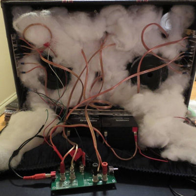 每個(gè)放大器的絕對(duì)最大供電電壓為28V,24V在工作范圍之內(nèi)。我使用了兩個(gè)UPS,鉛酸電池,以實(shí)現(xiàn)高能量密度。沒錯(cuò),很重,但是都放在量身定制的手提音箱內(nèi)——重量不是問(wèn)題。有了這種電源,boomcase就能夠在最大音量下工作大約5個(gè)小時(shí),音量適度時(shí)工作時(shí)間更長(zhǎng)。