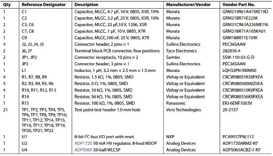 表1 ADP5065設(shè)計(jì)方案材料清單