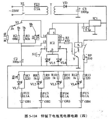 鋅錳干電池充電器,具有定時(shí)和充電指示功能,其充電電流為5OmA,可用于對(duì)端電壓為1.35~1/4V的全密封普通干電池充電。