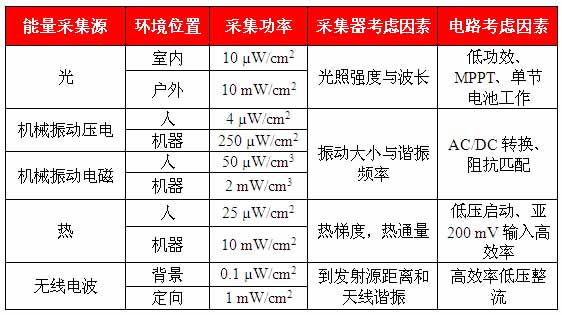 3)振動(dòng):振動(dòng)能量采集器通過電磁或者壓電方法利用振動(dòng)機(jī)械能,從而產(chǎn)生電能。
