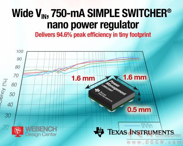 TI宣布推出業(yè)界最小的 12V、750mA DC/DC 電源穩(wěn)壓器。該 SIMPLE SWITCHER® 穩(wěn)壓器支持高性能并采用極小型毫微級封裝,可推動空間有限的電源密集型應(yīng)用發(fā)展,充滿滿足消費類、工業(yè)以及汽車等各種市場需求。這款毫微電源穩(wěn)壓器在 2.56 平方毫米封裝中高度整合大量特性,不僅可幫助工程師更便捷地為其系統(tǒng)設(shè)計電源,而且與 TI 獲獎型 WEBENCH® 在線設(shè)計工具相結(jié)合,還可簡化并加速設(shè)計進程。欲了解更多詳情、獲得樣片與評估板,敬請訪問:www.ti.com.cn/lmr22007-pr-cn。