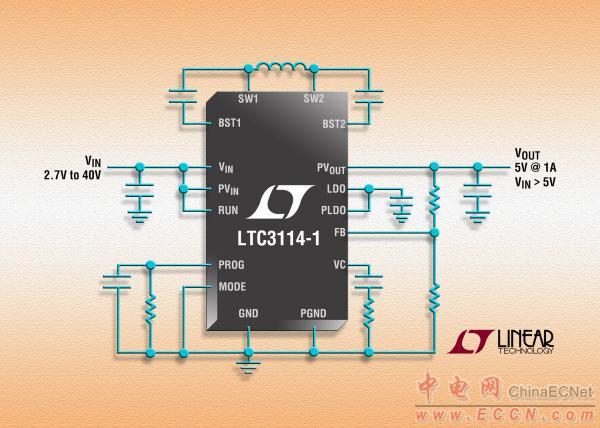 Linear推出同步、電流模式降壓-升壓型轉(zhuǎn)換器 LTC3114-1,該器件用多種電源提供高達(dá) 1A 連續(xù)輸出電流,包括單節(jié)鋰離子電池、24V/28V 工業(yè)電源軌和 40V 汽車輸入。LTC3114-1 在 2.2V 至 40V 輸入和 2.7V 至 40V 輸出范圍內(nèi)提供穩(wěn)定輸出,輸入可高于、低于或等于調(diào)節(jié)的輸出電壓,從而最大限度地提高了電源靈活性,就僅為降壓型的解決方案而言,LTC3114-1 可延長電池運(yùn)行時間。LTC3114-1 采用專有低噪聲降壓-升壓型拓?fù)洌诮祲汉蜕龎耗J街g提供連續(xù)無抖動轉(zhuǎn)換,非常適用于 RF 及其他噪聲敏感應(yīng)用。