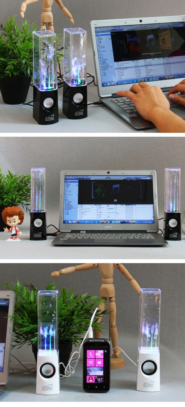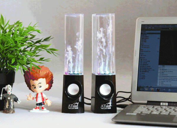 七彩水舞音響外觀感覺很酷,水有多種色彩變換,視覺效果不錯(cuò)(特別是夜晚)。屬于小型有源桌面音響,主要是配筆記本、平板電腦等用的。