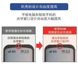 近年來(lái),智能手機(jī)和平板電腦等配備顯示屏的設(shè)備開始搭載色彩傳感器,用來(lái)分析周圍的RGB成分,以此來(lái)自動(dòng)調(diào)整顯示屏畫面,并根據(jù)照度調(diào)節(jié)顯示器的背光。