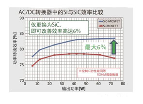 在高耐壓范圍中,SiC-MOSFET與Si-MOSFET相比,具有“開(kāi)關(guān)損耗與導(dǎo)通損耗少”、“可支持大功率”、“耐溫度變化”等優(yōu)勢(shì);谶@些優(yōu)勢(shì),當(dāng)SiC-MOSFET用于AC/DC轉(zhuǎn)換器和DC/DC轉(zhuǎn)換器等中時(shí),可帶來(lái)更高的功率轉(zhuǎn)換效率、散熱器件的小型化、高頻工作使線圈更小等更節(jié)電、零部件數(shù)量更少、安裝面積更小等效果。
