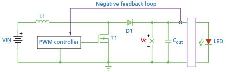 圖1. 基于非隔離式升壓拓?fù)涞腖ED驅(qū)動器電路