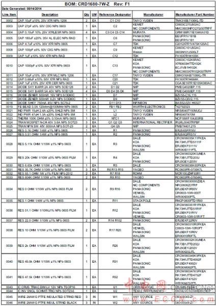 CRD1680-7W 7 W參考設(shè)計(jì)材料清單: