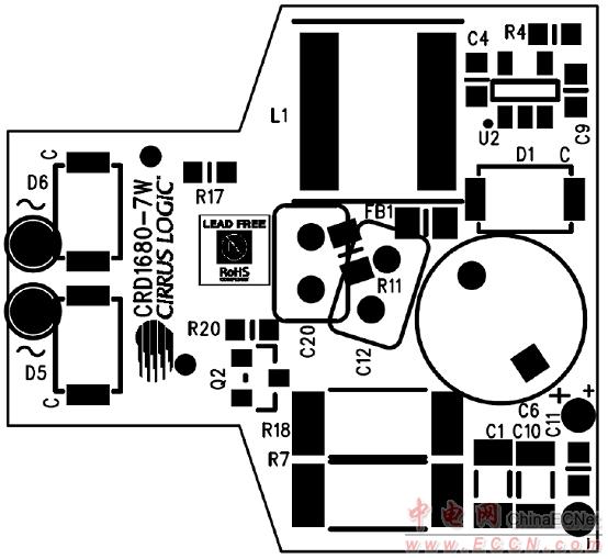 圖6.CRD1680-7W 7 W參考設(shè)計(jì)PCB頂層絲印圖
