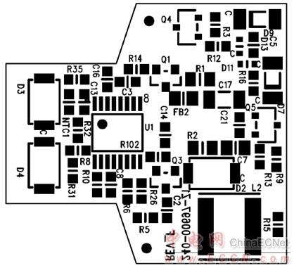 圖8.CRD1680-7W 7 W參考設(shè)計(jì)PCB走線圖(層1)