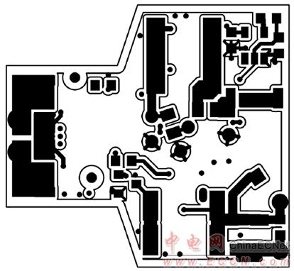 圖10.CRD1680-7W 7 W參考設(shè)計(jì)PCB走線圖(層3)