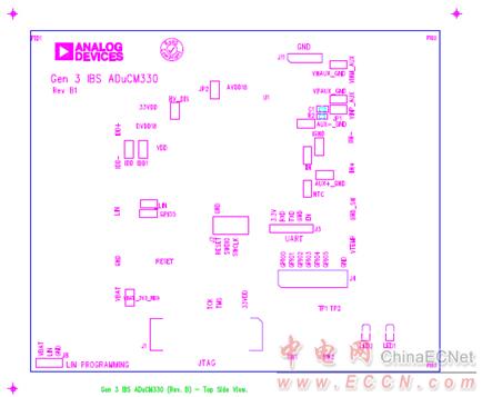 圖5.評(píng)估板EVAL-ADUCM331QSPZ PCB元件布局圖(正面)