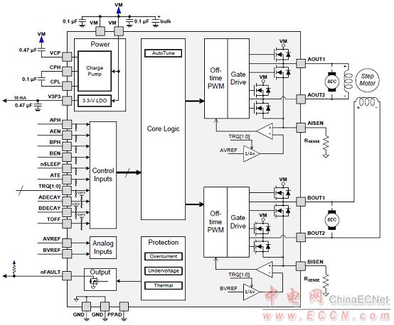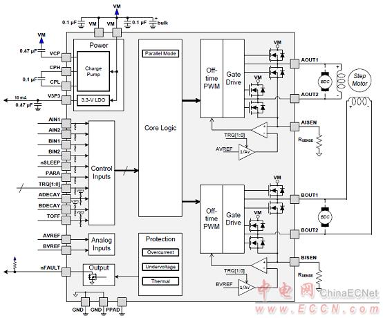 圖4。DRV8881P驅(qū)動(dòng)步進(jìn)馬達(dá)應(yīng)用框圖