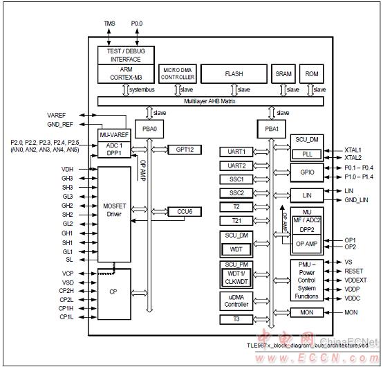 Infineon公司的TLE9879是集成了LIN 2.2與SAEJ2602兼容的LIN收發(fā)器和BLDC MOSFET驅(qū)動(dòng)器的微控制器,采用標(biāo)準(zhǔn)的ARM® Cortex™ M3內(nèi)核,包括了六個(gè)全集成的NFET驅(qū)動(dòng)器,適合通過(guò)外接六個(gè)功率NFET來(lái)驅(qū)動(dòng)3相馬達(dá),主要用于汽車的燃料泵,HVAC,引擎冷卻風(fēng)扇,水泵和BLDC蚌與風(fēng)扇.本文介紹了TLE9879主要特性,框圖,BLDC馬達(dá)驅(qū)動(dòng)電路和材料清單,以及評(píng)估板TLE9879 EVALKIT,電路圖和PCB設(shè)計(jì)文件圖.