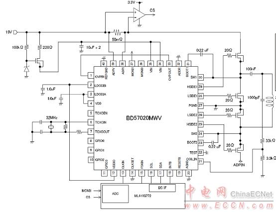 圖5.BD57020MWV WPC Qi中功率參考設(shè)計(jì)電路圖 |