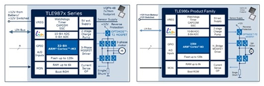 隨著汽車電子的發(fā)展,智能電機在汽車電子系統(tǒng)的應用也越來越廣泛,且優(yōu)勢十分明顯。目前每車平均28個電機,預計兩年之后會上升至30個。電機離不開驅動和控制裝置。英飛凌智能車用電機之驅動芯片已經(jīng)發(fā)展到第三代TLE986x、TLE987x,可以覆蓋直流電機和直流無刷電機。