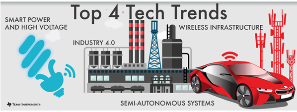 現(xiàn)如今,我們身邊的所有東西似乎都變得越來越智能,它們不僅可以通過網(wǎng)絡(luò)互聯(lián)實現(xiàn)更多的全新功能,同時也更進一步地朝著電子化發(fā)展。近幾年,半導(dǎo)體技術(shù)領(lǐng)域的創(chuàng)新正推動著包括個人電子、汽車、制造業(yè)和許多其它市場中全新產(chǎn)品的快速發(fā)展。接下來,我們將介紹最值得關(guān)注的一些技術(shù)趨勢,以及半導(dǎo)體行業(yè)在其中所發(fā)揮的作用,這些趨勢將會進一步推動很多全新市場的創(chuàng)新。