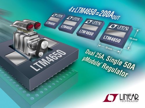 LTM4650的額定工作溫度范圍為-40℃至 125℃。千片批購價(jià)為每片46.75美元。