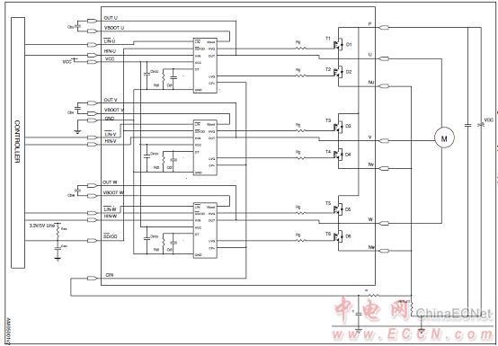 圖5. STEVAL-IHM034V2馬達(dá)控制板電路圖(1)