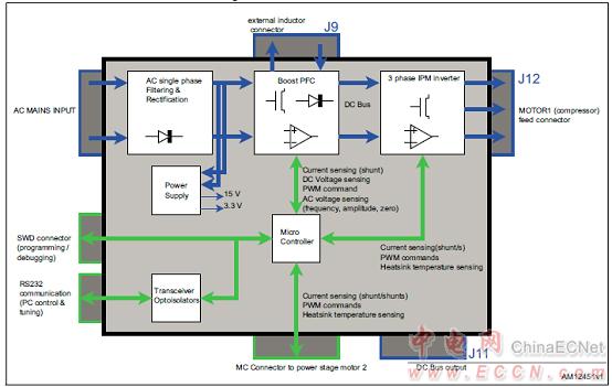 圖4.STEVAL-IHM034V2馬達(dá)控制板架構(gòu)圖