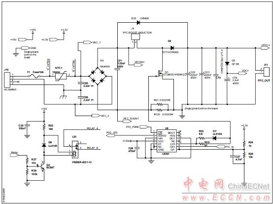 Single-stage boost converter based on the STGW35HF60W(or STW38N65M5)and STTH15R06D or (STPSC1206D)